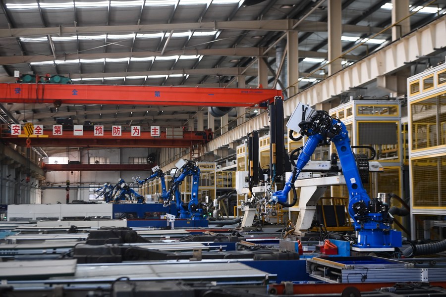 This photo taken on Nov. 2, 2022 shows a digital processing line at an auto parts factory in Nanhu District of Jiaxing City, east China's Zhejiang Province. (Xinhua/Xu Yu)