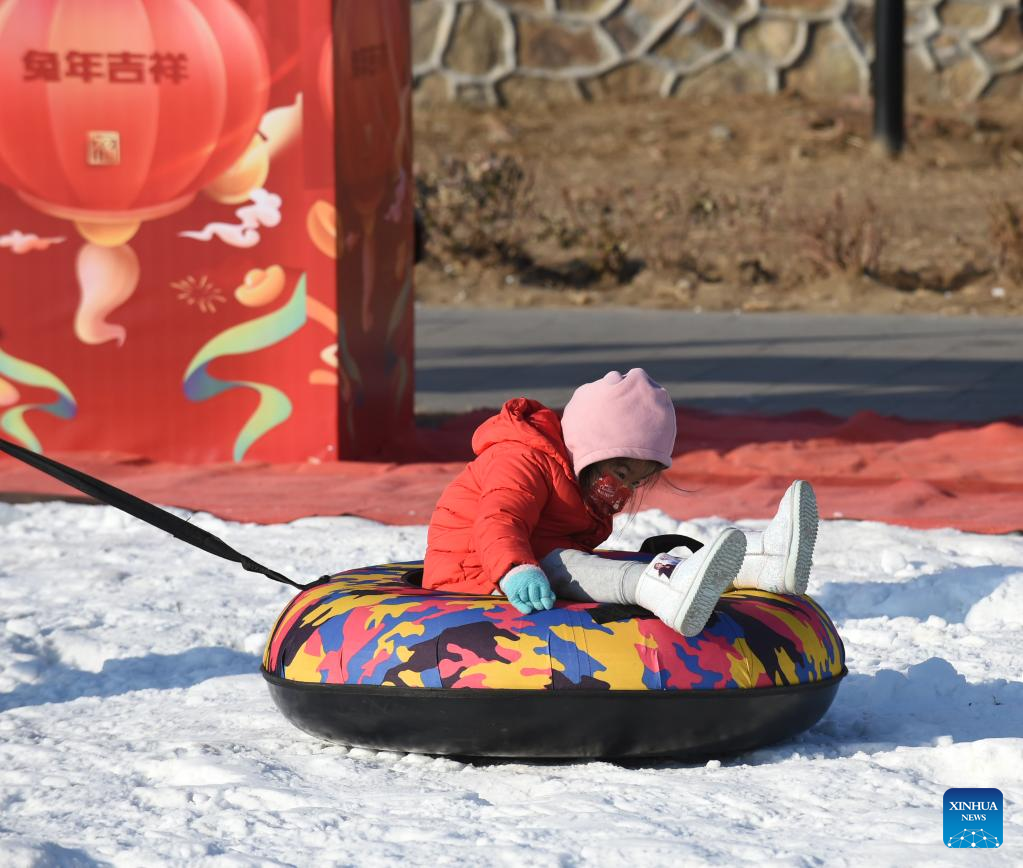 A child has fun at Yuanmingyuan Park in Beijing, capital of China, Dec. 31, 2022. (Xinhua/Luo Xiaoguang)
