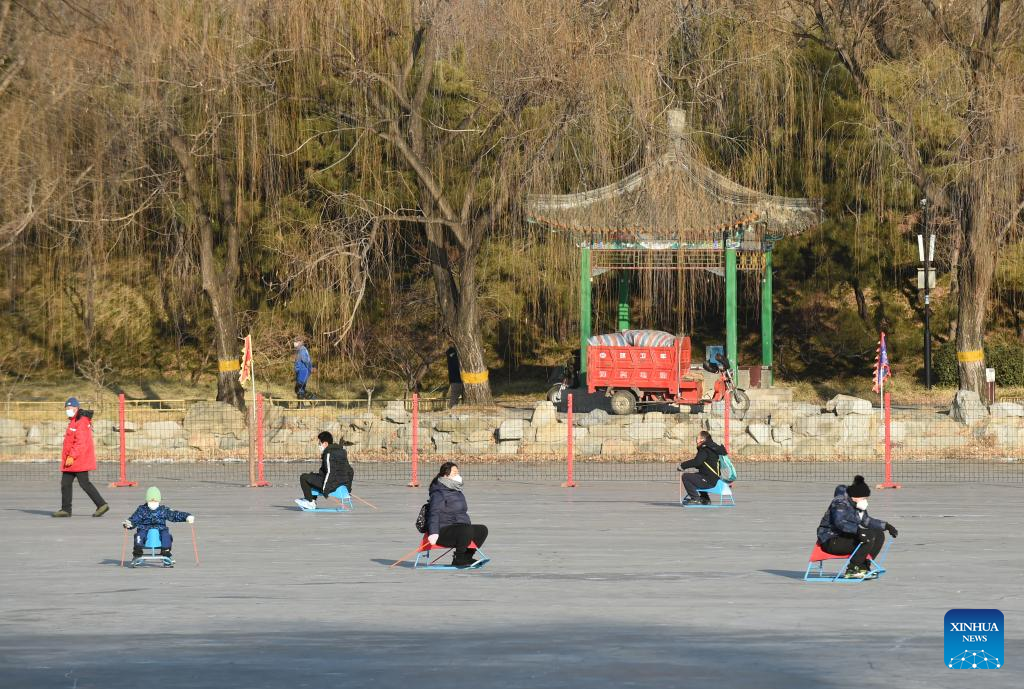 Visitors have fun at Yuanmingyuan Park in Beijing, capital of China, Dec. 31, 2022. (Xinhua/Luo Xiaoguang)