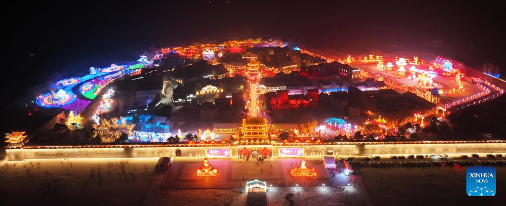 This aerial photo taken on Dec. 31, 2022 shows a view of a lantern show in Shenyang, northeast China's Liaoning Province. (Xinhua/Yang Qing)