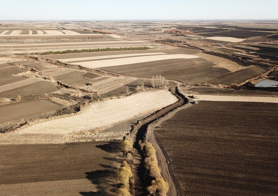 This aerial photo taken on Oct. 18, 2022 shows a site of a soil erosion restoring project at Sandao Town, Baiquan County, northeast China's Heilongjiang Province. (Xinhua/Wang Jianwei)
