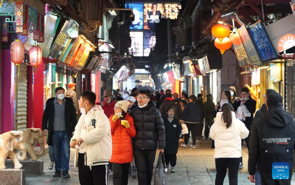 People saunter on Furong Street in Jinan, east China's Shandong Province, Jan. 2, 2023. (Xinhua/Xu Suhui)