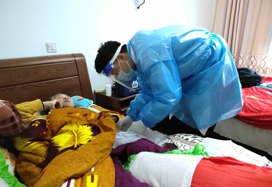 Rural doctor Hou Luobo treats a villager door to door in Youxian County, central China's Hunan Province, Jan. 3, 2023. (Xinhua)