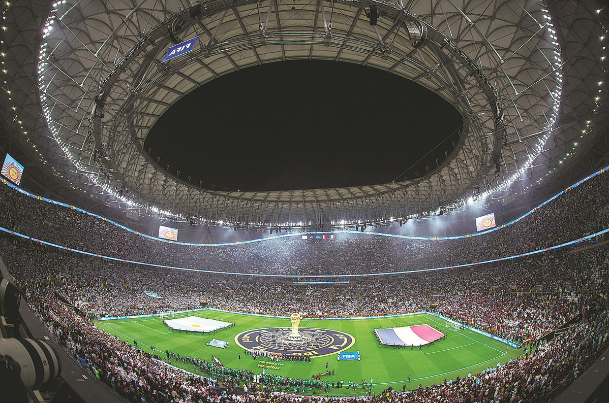 Lusail Stadium, jointly built by Qatari construction companies and Beijing-based China Railway Construction Corp, witnesses the FIFA World Cup Qatar 2022 final between Argentina and France in Lusail City, Qatar, Dec 18. [Photo/Xinhua]