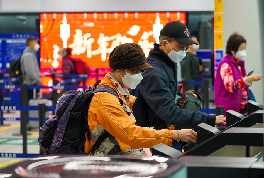Travelers arrive at the Lok Ma Chau control point by Mass Transit Railway (MTR) in Hong Kong, south China, Jan. 8, 2023. (Xinhua/Lui Siu Wai)