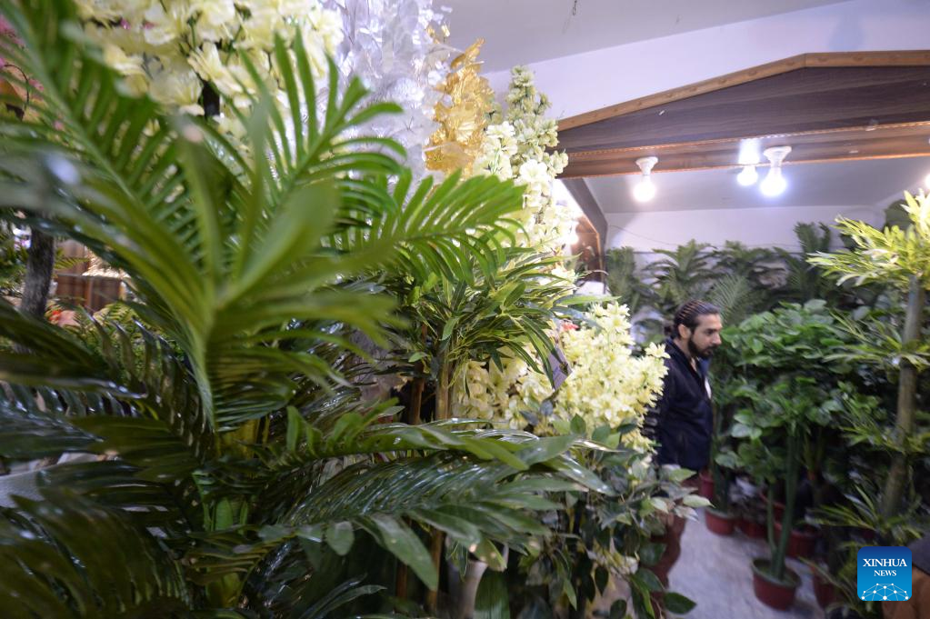 Artificial flowers imported from China are seen at a flower shop in Rawalpindi, Pakistan on Jan. 3, 2023. (Xinhua/Ahmad Kamal)
