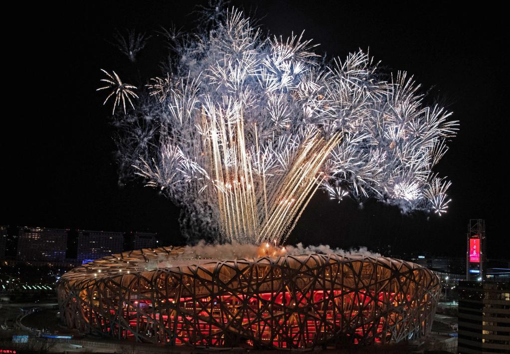Fireworks illuminate the night sky during the opening ceremony of the Beijing 2022 Olympic Winter Games in Beijing, capital of China, Feb. 4, 2022. (Xinhua/Wu Huiwo)