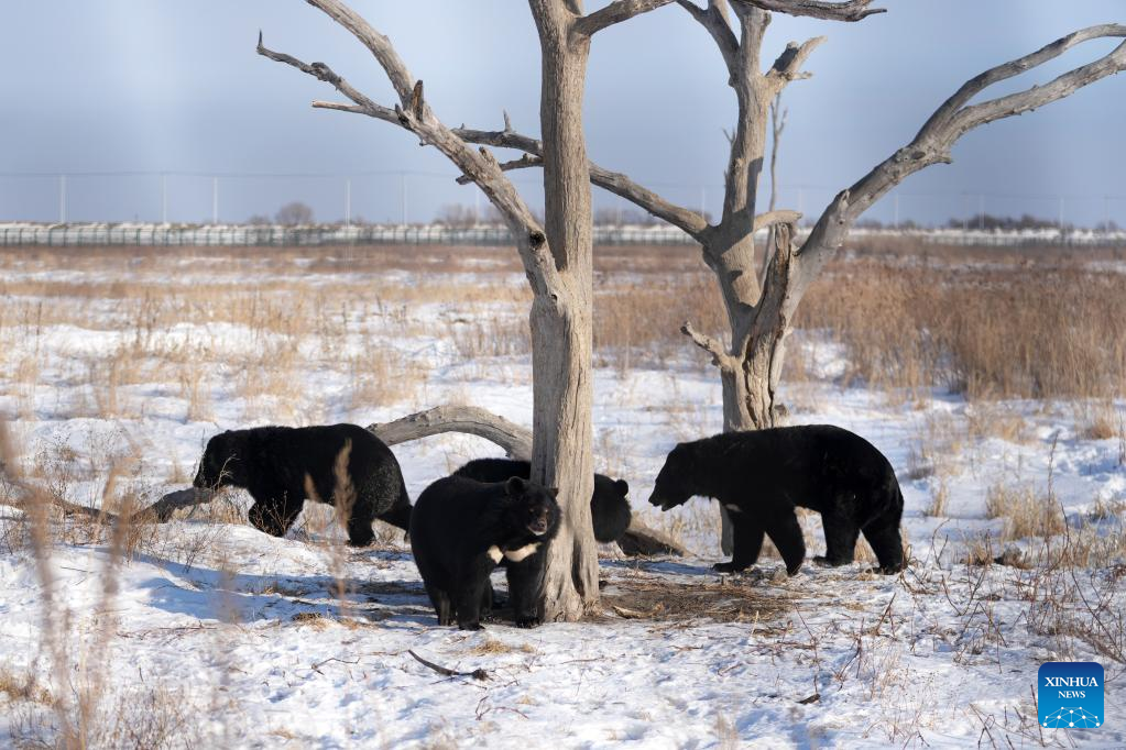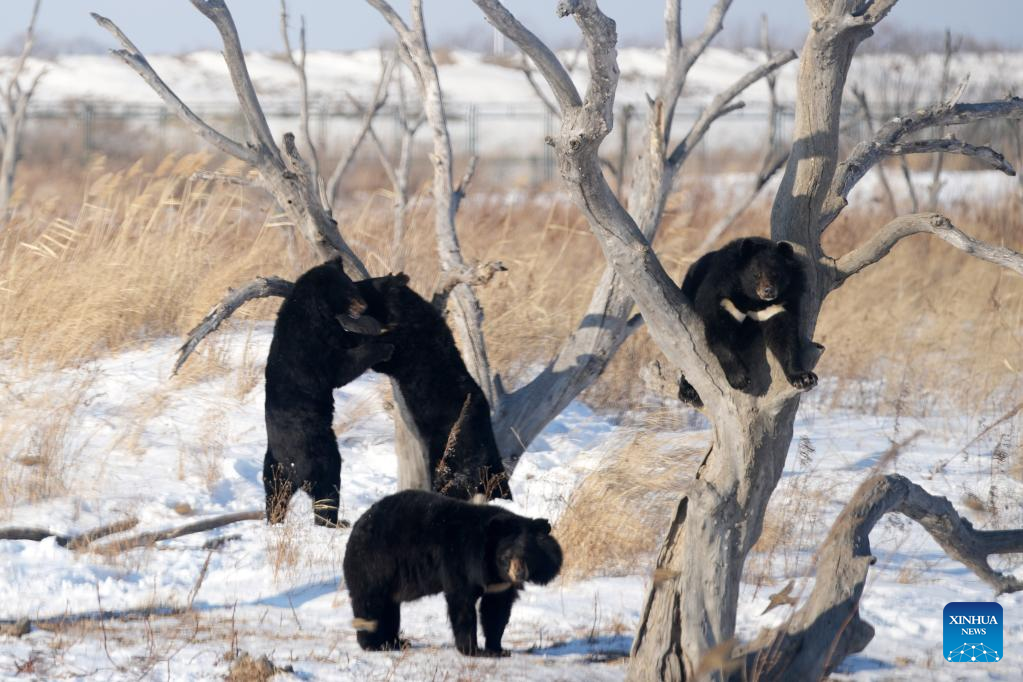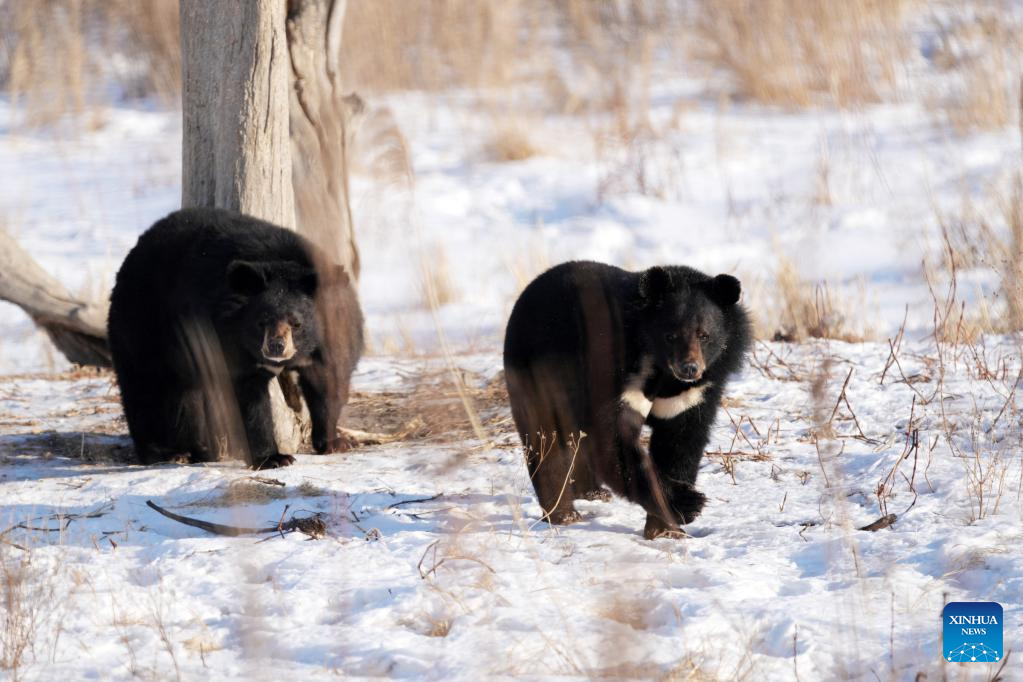 Black bears are pictured in a bear park in Fuyuan City, northeast China's Heilongjiang Province, Jan. 10, 2023. (Xinhua/Wang Jianwei)