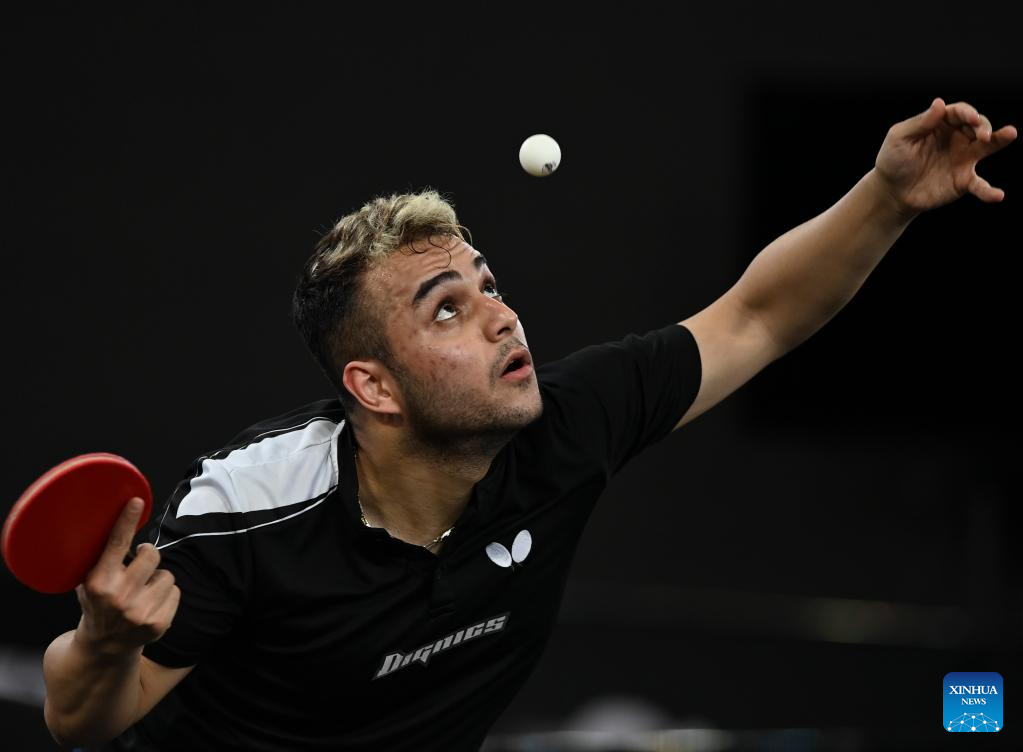 Amir Hossein Hodaei of Iran serves during the men's singles round of 32 match against Xiang Peng of China at World Table Tennis Championships (WTTC) Asian Continental Stage in Doha, Qatar, Jan. 10, 2023. (Photo by Nikku/Xinhua)