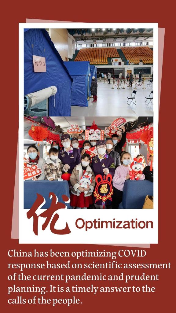 China's optimization of its COVID response doesn't mean letting go of the virus, nor is it equivalent to a so-called "full opening" or a "lying flat" approach. Instead, it ensures that resources are always allocated to areas where they are needed the most.