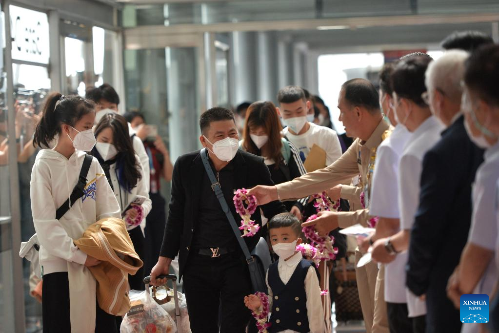 "Welcome to Thailand!" Thai Deputy Prime Minister Anutin Charnvirakul and other senior officials said on Monday to the first group of Chinese tourists arriving at Thailand's Suvarnabhumi Airport in Bangkok. The 269 passengers from Xiamen, East China's Fujian province, were greeted with flowers and gift bags.