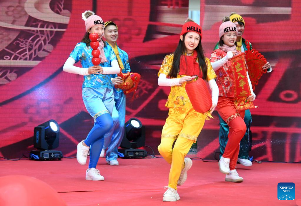 Actors perform during the opening ceremony of the Spring Festival culture season in Haidian District of Beijing, capital of China, Jan. 14, 2023. The Spring Festival culture season kicked off at the north division of Haidian culture center on Saturday, fulfilling the cultural needs of residents with various activities during the Spring Festival. (Xinhua/Ren Chao)