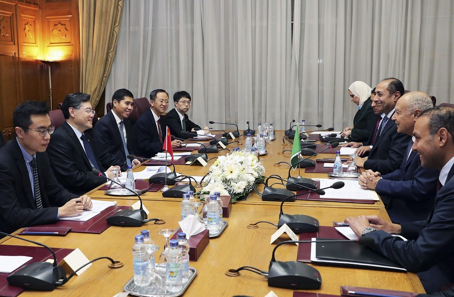 During their meeting in Cairo, the capital of Egypt, Qin hailed the successful convening of the summit last month as a "milestone" in developing the China-Arab ties in the new era.