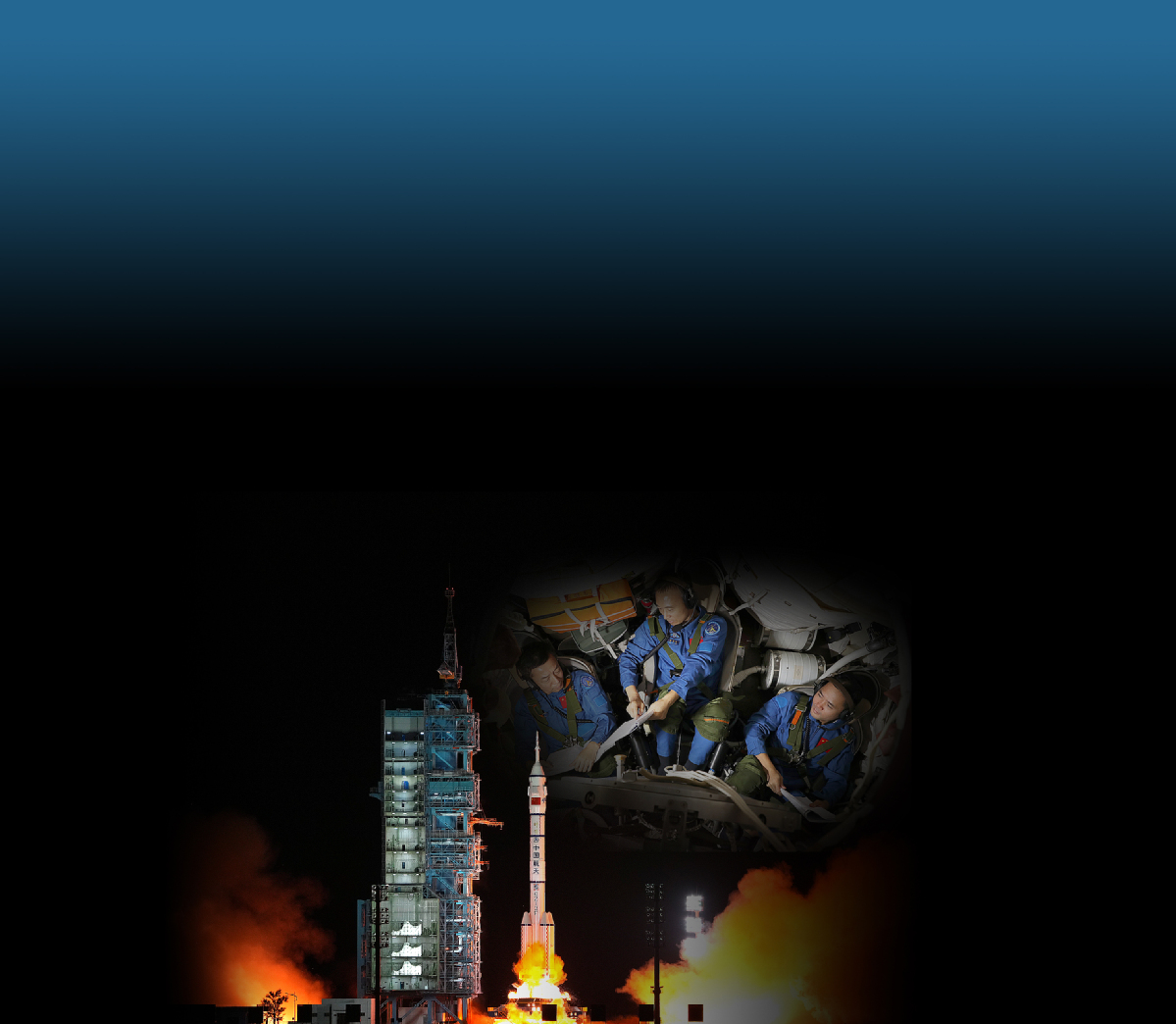 Right: The crew of Shenzhou XV prepares for the mission in a spacecraft simulator on Sept 1. [XU BU/FOR CHINA DAILY] Left: The Shenzhou XV spacecraft lifts off from Jiuquan, Inner Mongolia autonomous region, on Nov 29. [LI GANG/XINHUA]