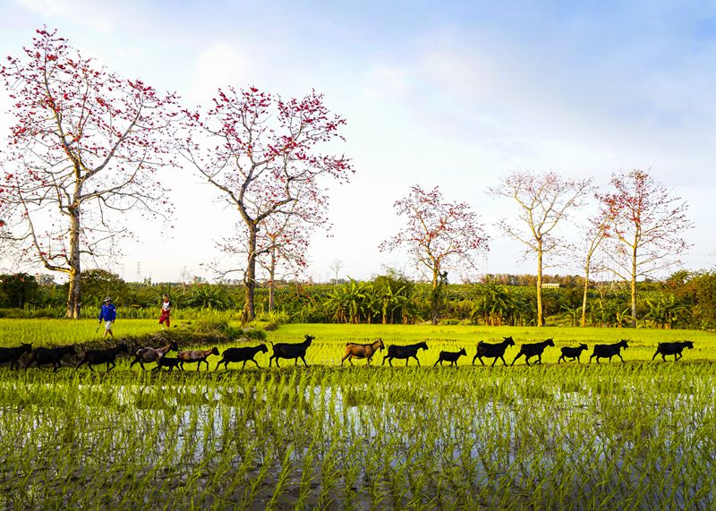 Photos shows several kapok trees in a field in Changjiang Li autonomous county, south China's Hainan Province. (Photo courtesy of the publicity department of the CPC Changjiang County Committee)