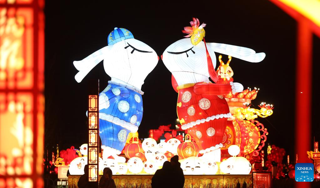 This photo shows rabbit-themed Chinese lanterns at the square in front of the Shenyang Palace Museum in Shenyang, capital of northeast China's Liaoning Province, Jan. 15, 2023. As the Year of the Rabbit approaches, various colourful Chinese lanterns appeared at the core area of the ancient city of Shenyang, attracting many citizens and tourists here to enjoy lively Spring Festival atmosphere. (Xinhua/Yao Jianfeng)