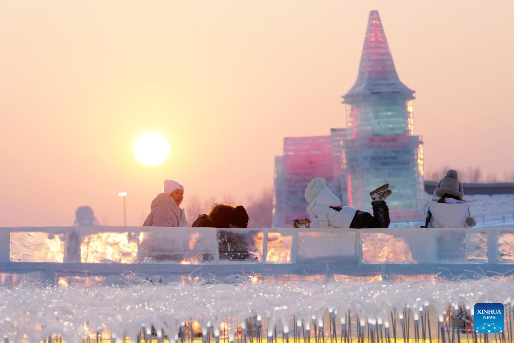 Tourists visit the Harbin Ice-Snow World theme park in Harbin, northeast China's Heilongjiang Province, Jan. 5, 2023. (Photo/Xinhua)