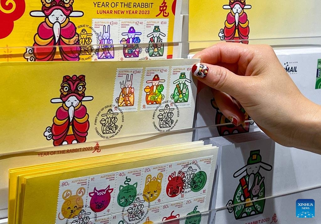 Stamps marking the Year of the Rabbit are seen at a post office in Melbourne, Australia, Jan. 17, 2023. (Xinhua/Bai Xuefei)