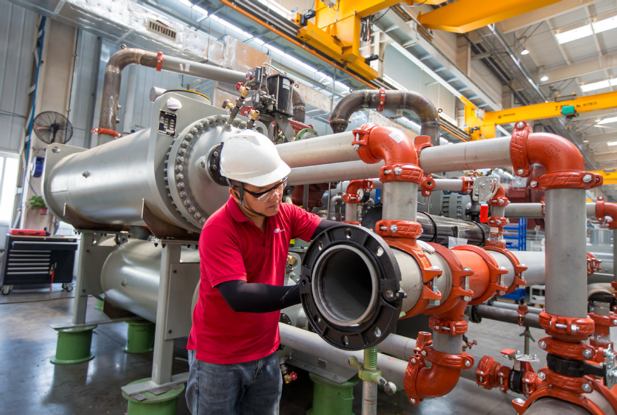 An employee works on the production line of a foreign-funded machinery manufacturer in Suzhou, Jiangsu province. [Photo by Zhai Huiyong/For China Daily]