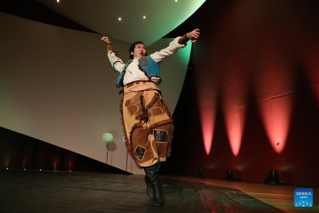 Jing Hui performs Chinese classical dance during the "Beauty Beyond Words" 2023 Chinese New Year Dance and Music Show at the Philharmonie Luxembourg concert hall in Luxembourg, Jan. 17, 2023. (Xinhua/Zheng Huansong)