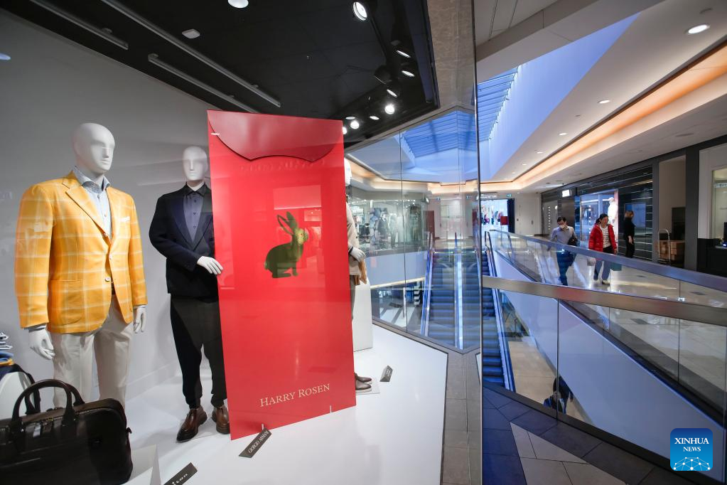 A Chinese Lunar New Year-themed display is seen at a store window inside a shopping mall in Vancouver, British Columbia, Canada, on Jan. 19, 2023. (Photo by Liang Sen/Xinhua)