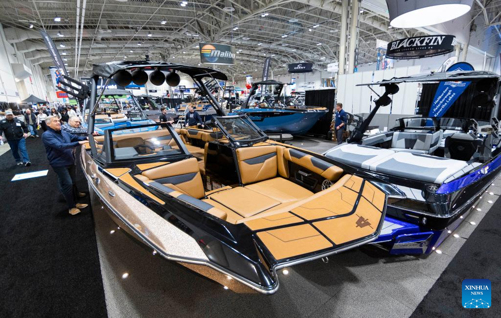 People visit the 2023 Toronto International Boat Show in Toronto, Canada, on Jan. 20, 2023. With hundreds of boats of all sizes and lifestyles from more than 450 exhibitors from across the world, the ten-day show kicked off here on Friday. (Photo by Zou Zheng/Xinhua)