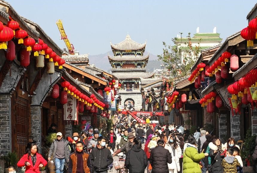 Tourists visit an ancient town in Xichang, Liangshan Yi autonomous prefecture, southwest China's Sichuan province, Jan. 18, 2023. (People's Daily Online/Li Jieyi)