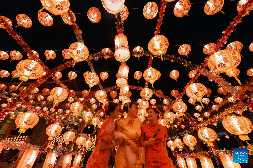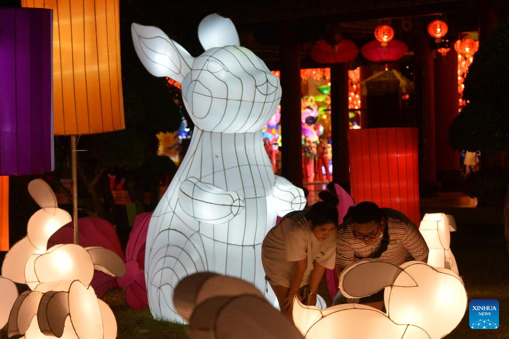 People visit a lantern festival in Samut Prakan, Thailand, Jan. 20, 2023. The event is held here from Jan. 20 to Feb. 19. (Xinhua/Rachen Sageamsak)