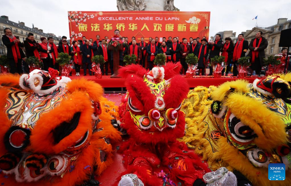 People participate in the Chinese New Year parade in Paris, France, on Jan. 22, 2023. (Xinhua/Gao Jing)