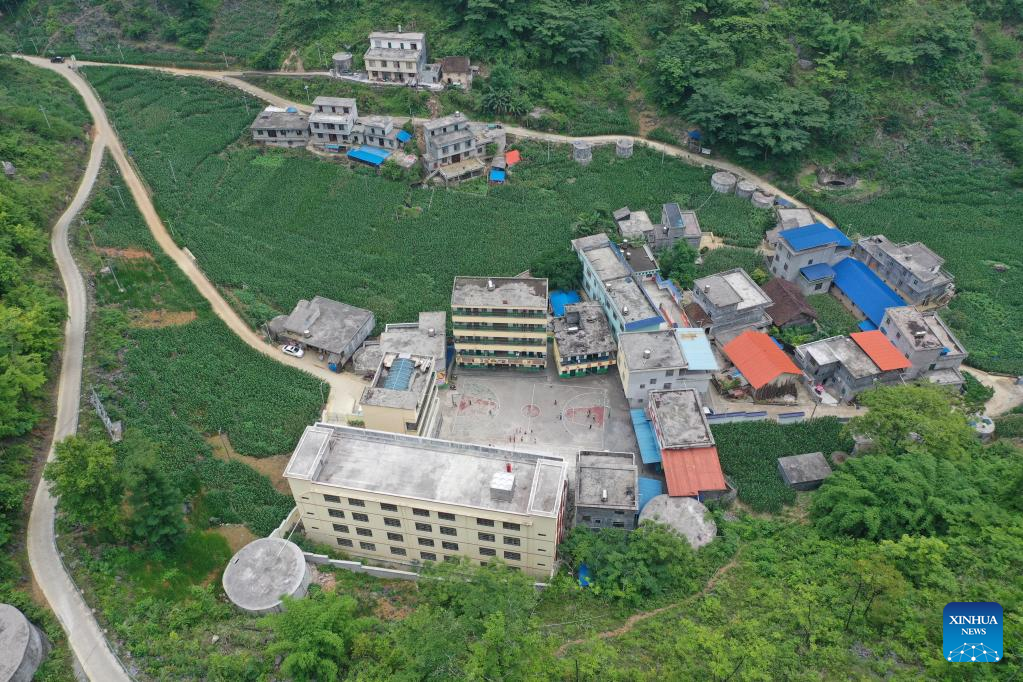 This aerial photo shows Nongyong primary school in Bansheng Town, Dahua Yao Autonomous County, south China's Guangxi Zhuang Autonomous Region, May 19, 2022.