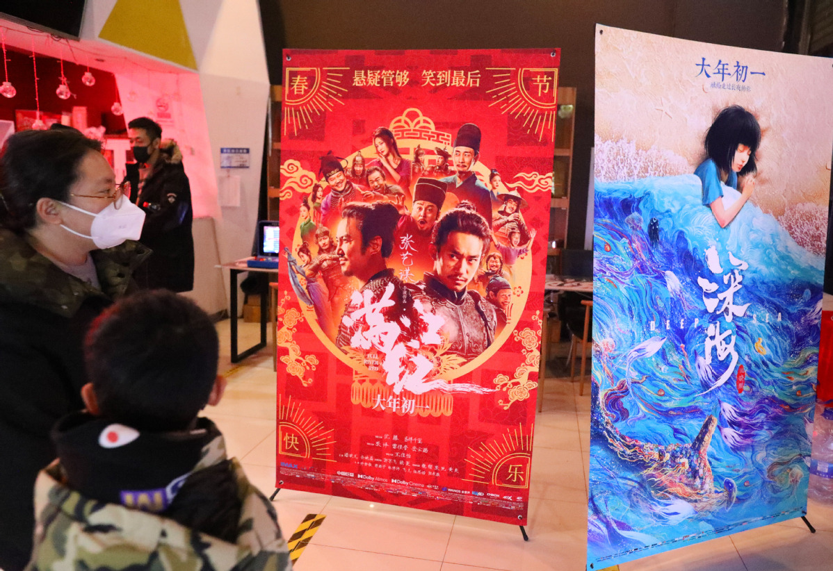 Patrons pass by a poster of the movie "Manjianghong" in a cinema in Beijing on Jan 26, 2023. [Photo by Zhu Xingxin/chinadaily.com.cn]