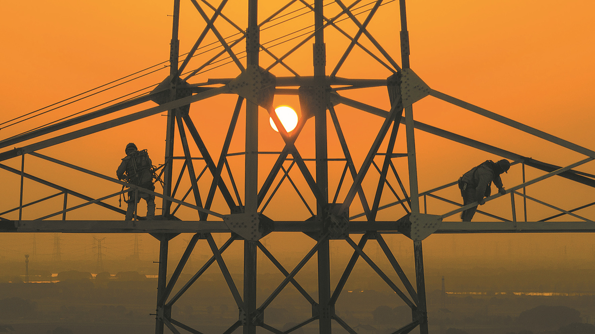 Technicians check power transmission facilities in Suzhou, Jiangsu province. SHI JUN/FOR CHINA DAILY