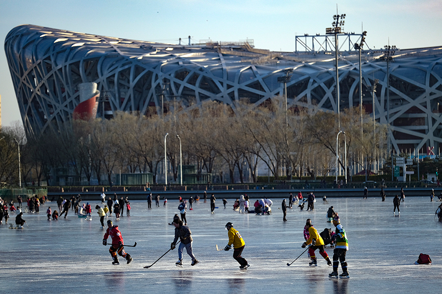 Tourists experience skating in Beijing Olympic Park, on Dec 8, 2022. [PHOTO by CUI JUN/FOR CHINA DAILY]