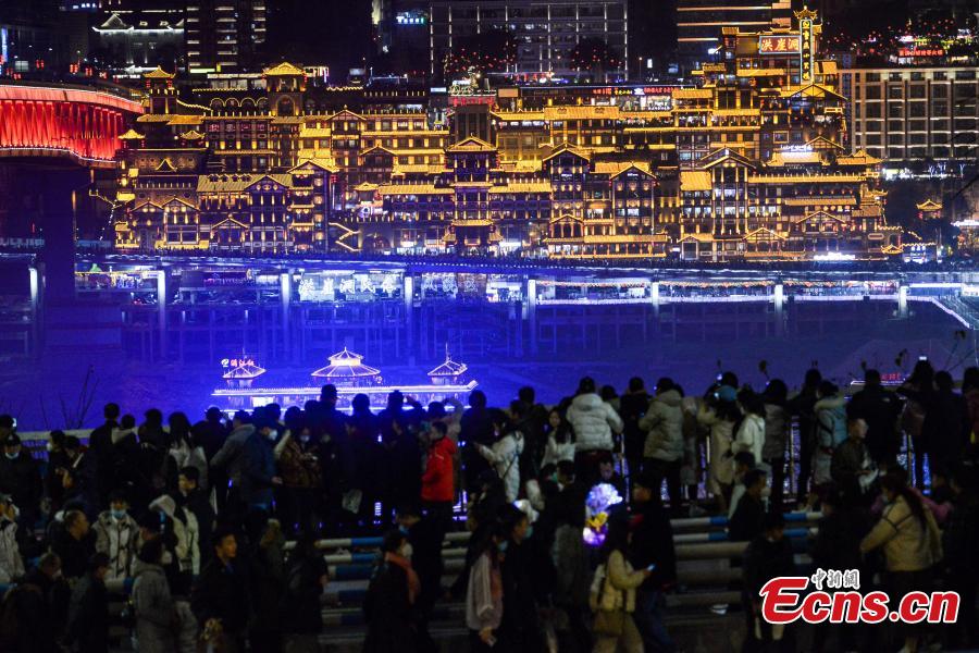 Tourists visit Hongya Cave in southwest China's Chongqing at night, Jan. 26, 2023. (Photo: China News Service/He Penglei)