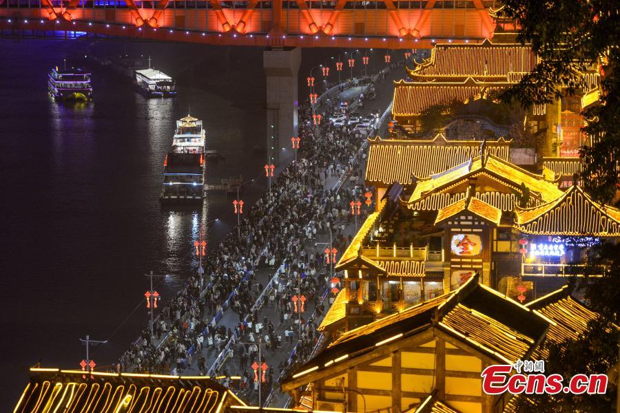 Night view of Hongya Cave draws tourists to Chongqing (6)