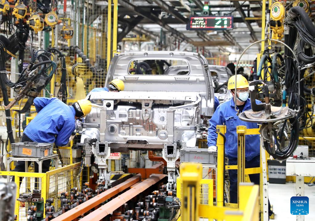 Staff members work at a workshop of an auto manufacturing enterprise in Qingdao, east China's Shandong Province, Jan. 28, 2023. Factories and companies across China resumed work after the Spring Festival holiday. (Photo by Zhang Jingang/Xinhua)