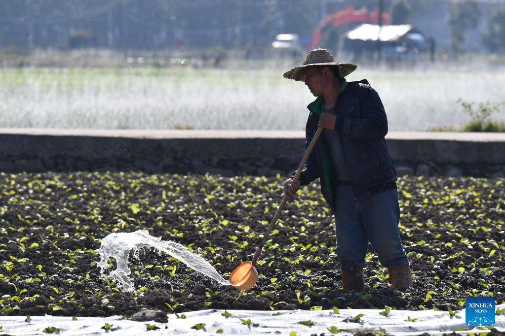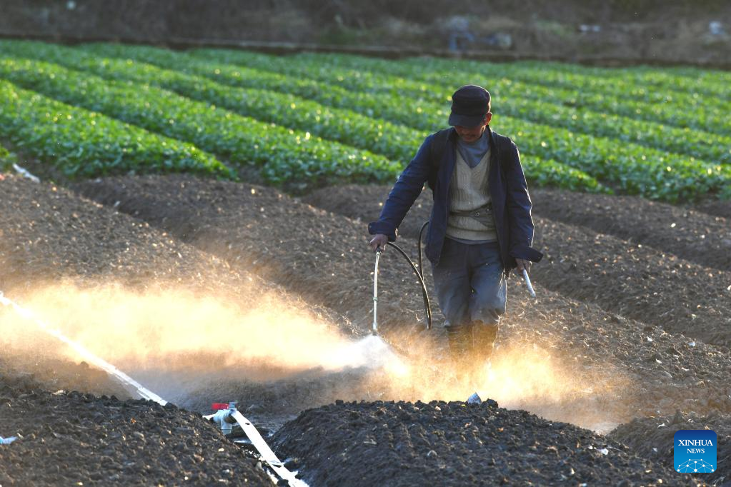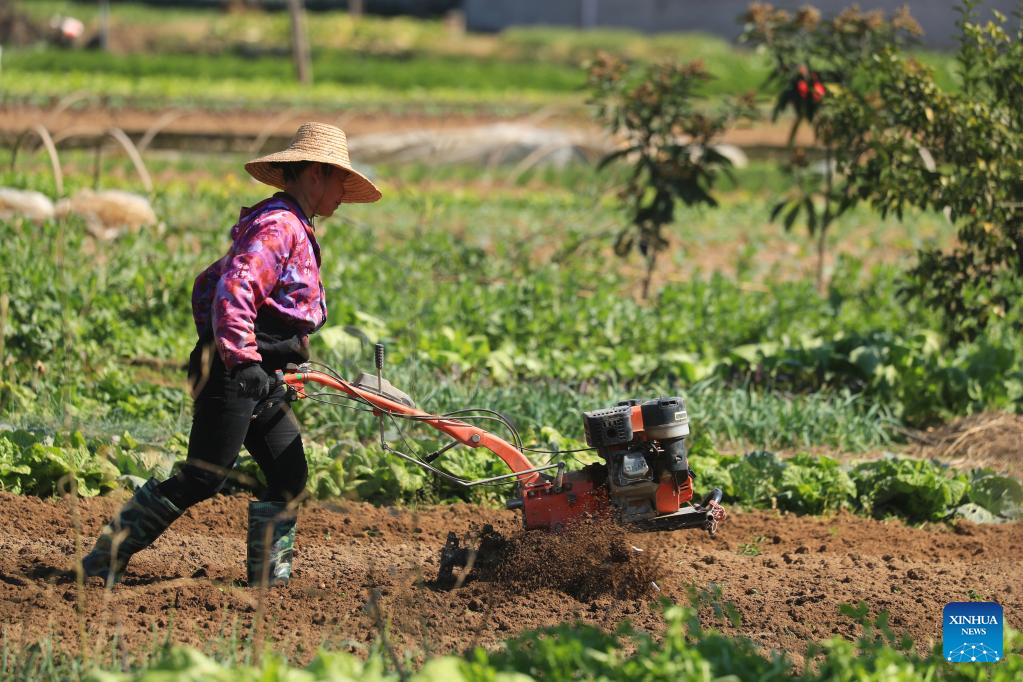 A farmer works in a field in Nantong Township of Minhou County, southeast China's Fujian Province, Jan. 30, 2023. (Xinhua/Jiang Kehong)