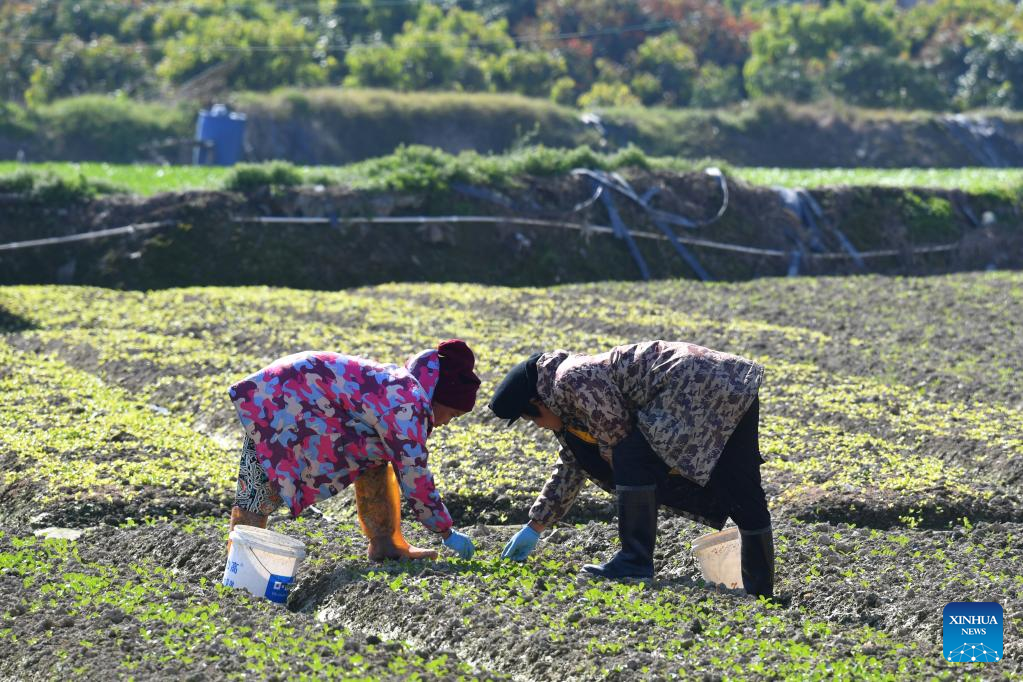 Farmers work in a field in Nantong Township of Minhou County, southeast China's Fujian Province, Jan. 31, 2023. (Xinhua/Jiang Kehong)