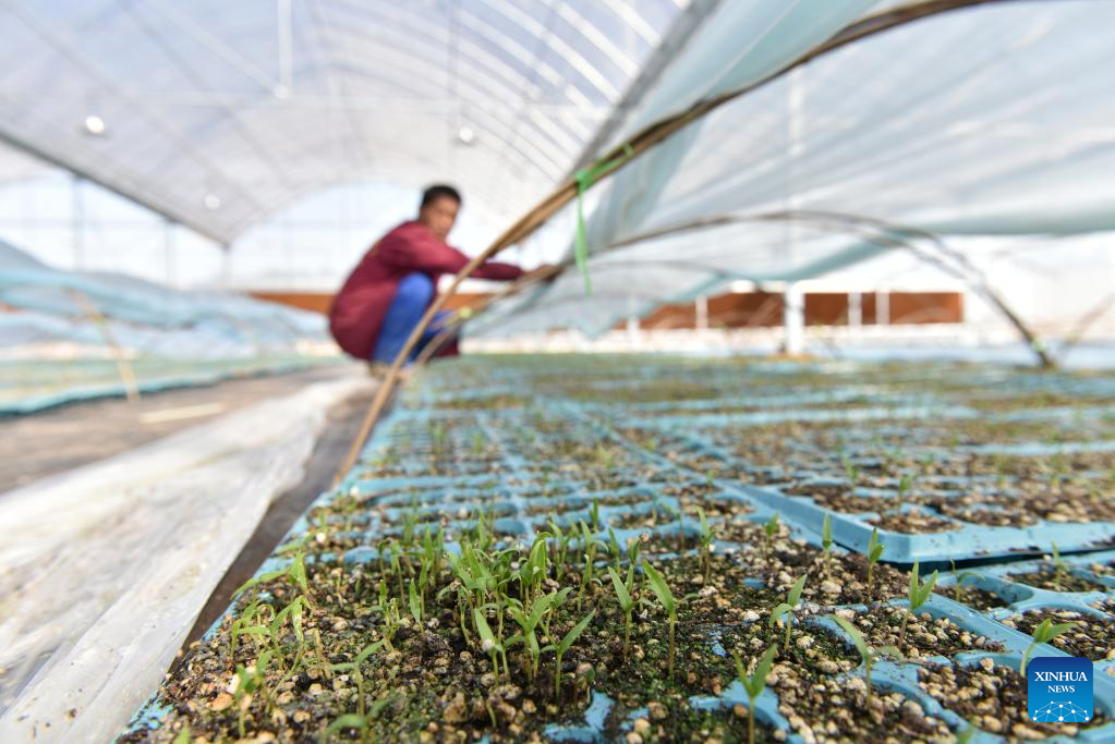 A farmer works in an intelligent temperature control greenhouse in Tachong Village of Hengdong County, central China's Hunan Province, on Jan. 31, 2023. (Photo by Xiao Yahui/Xinhua)
