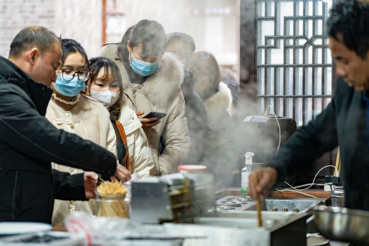 Diners line up for snacks at a restaurant in Hefei, Anhui province, on Jan.26, 2023. [RUAN XUEFENG/FOR CHINA DAILY]