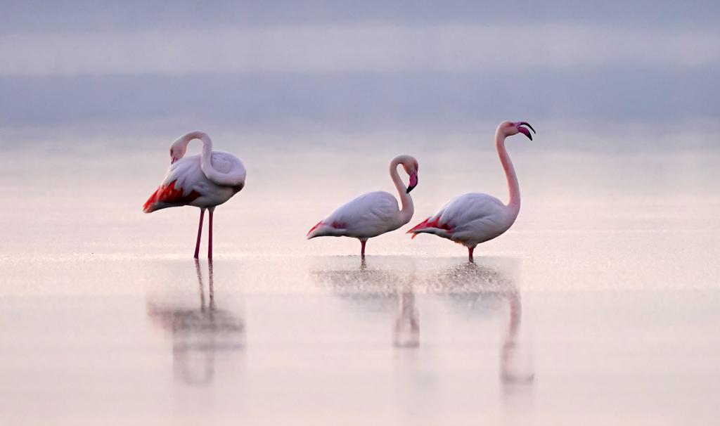 Wild flamingoes winter at the Salt Lake in Yuncheng City, north China's Shanxi Province. (vip.people.com.cn/Yan Xin)