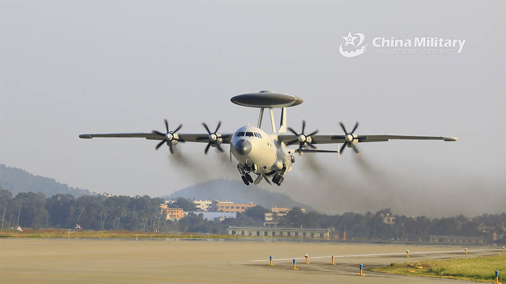 An Airborne Early Warning (AEW) aircraft attached to an aviation division of air force under the PLA Southern Theater Command speeds up to take off in a recent flight training exercise. (eng.chinamil.com.cn/Photo by Gao Hongwei)