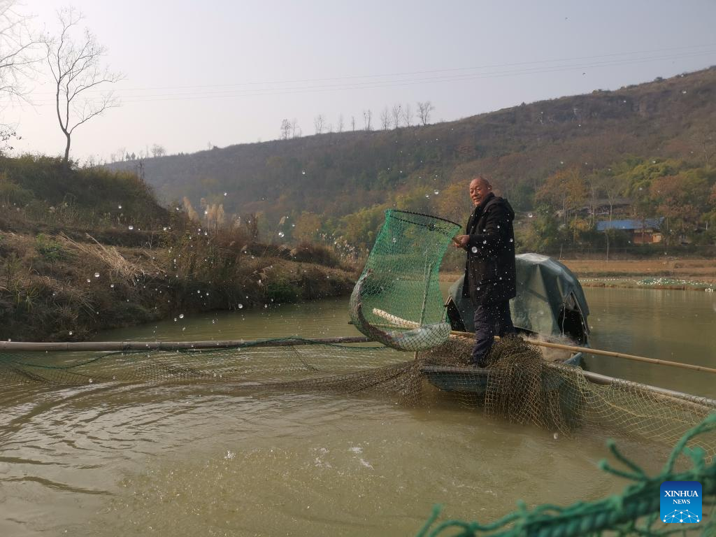 GUIYANG, Feb. 1 (Xinhua) -- During the just-ended Spring Festival holiday, Wang Chaosheng has been busy keeping fish as his ponds welcomed new fry. He was glad to witness his new business flourish.