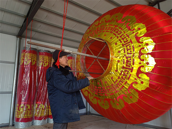 Bai Junping, a 69-year-old lantern maker in Tuntou village, was preparing to deliver a big palace lantern with a diameter of 6 meters to a client. "Everyone can make red lanterns here in the village, and I must improve my skills by continuing to learn so that my lanterns can be more exquisitely made and then sold at higher prices," he said.