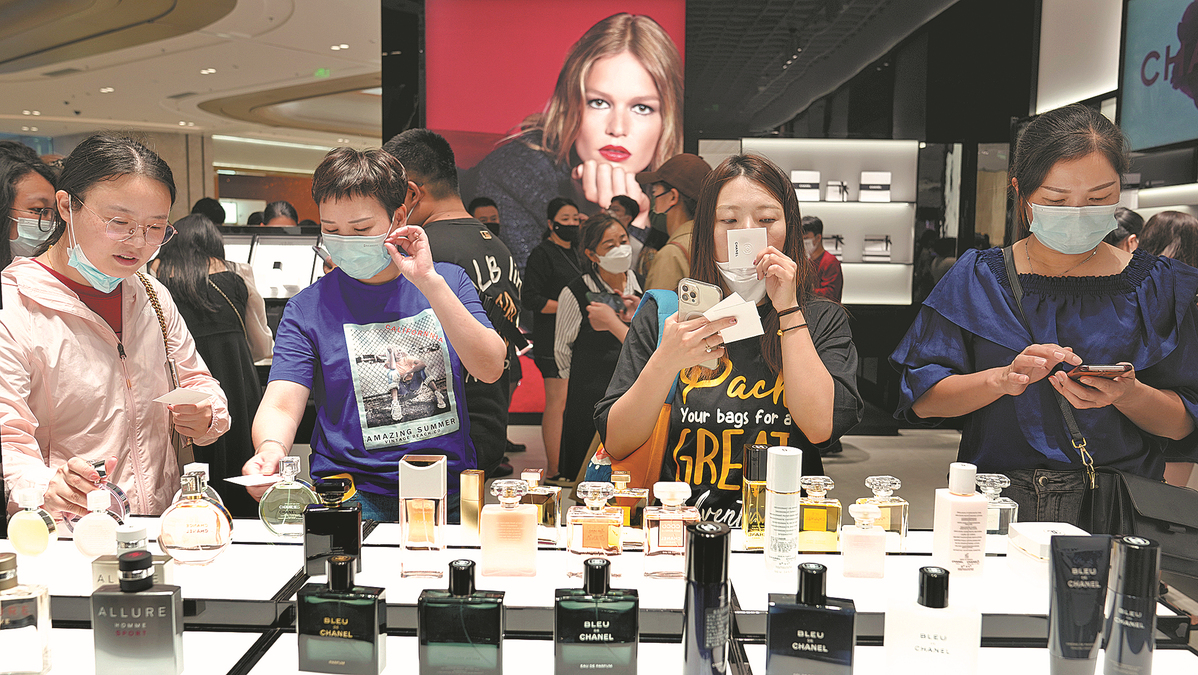 Customers pick up commodities at Haikou International Duty Free City in Haikou, Hainan province, on Oct 28, 2022. ZHANG MAO/FOR CHINA DAILY