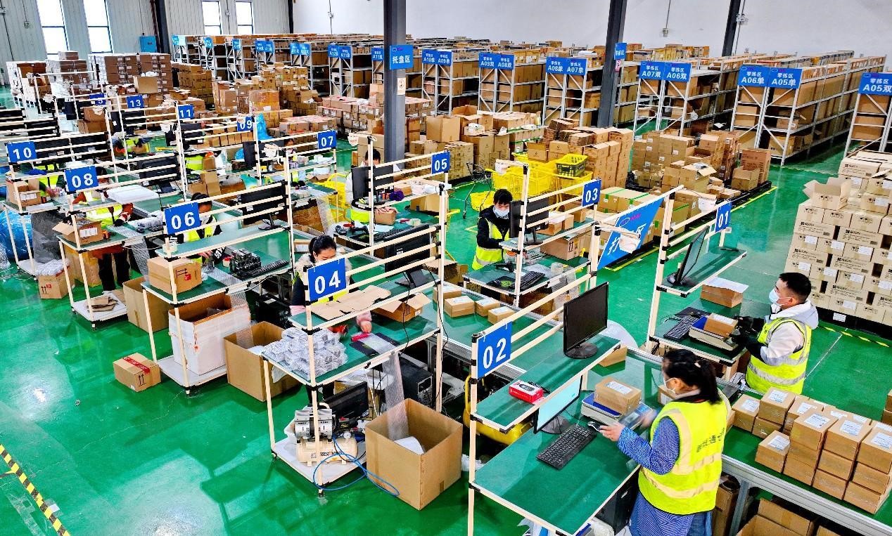 Commodities are about to be shipped in a distribution area of a bonded logistics center in Longnan, east China's Jiangxi province, Dec. 14, 2022. (People's Daily Online/Zhu Haipeng)