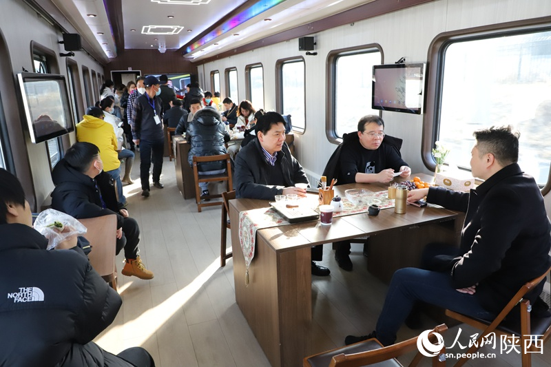 A dedicated tourist train from Xi'an, capital of northwest China's Shaanxi Province, to Zhashui county in Shangluo city of Shaanxi, is equipped with several recreational facilities, including mahjong tables, karaoke machines, mini movie theaters, and massage chairs. (People's Daily Online/Zou Xing)