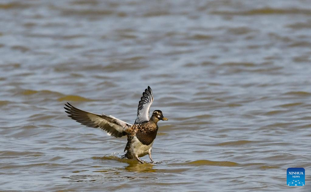A garganey is observed in Dongzhaigang National Nature Reserve in south China's Hainan Province, Jan. 30, 2023. February 2 marks World Wetlands Day. A total of 32,036 water birds of 71 species were observed during a latest annual survey of water birds wintering in Hainan. Among them, 201 black-faced spoonbills were recorded, the highest number since the survey of wintering water birds began in 2003. (Xinhua/Yang Guanyu)