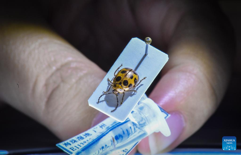 This photo taken on Oct. 25, 2021 shows a sample of Sphenoraia (Sphenoraioides) haizhuensis Yang, 2021, a new species discovered at Haizhu Wetland in Guangzhou, south China's Guangdong Province. (Xinhua/Liu Dawei)