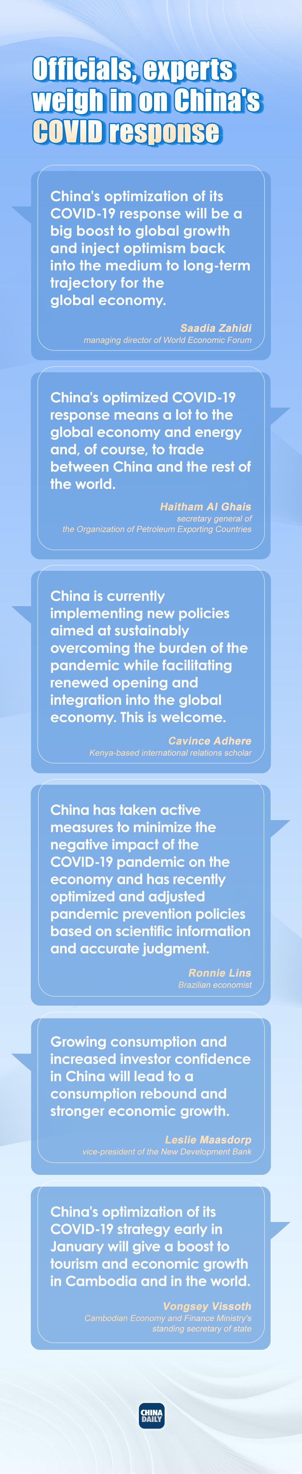 China has adapted its COVID response based on evolving situations over the past three years. Let's hear what foreign officials and experts have to say.
